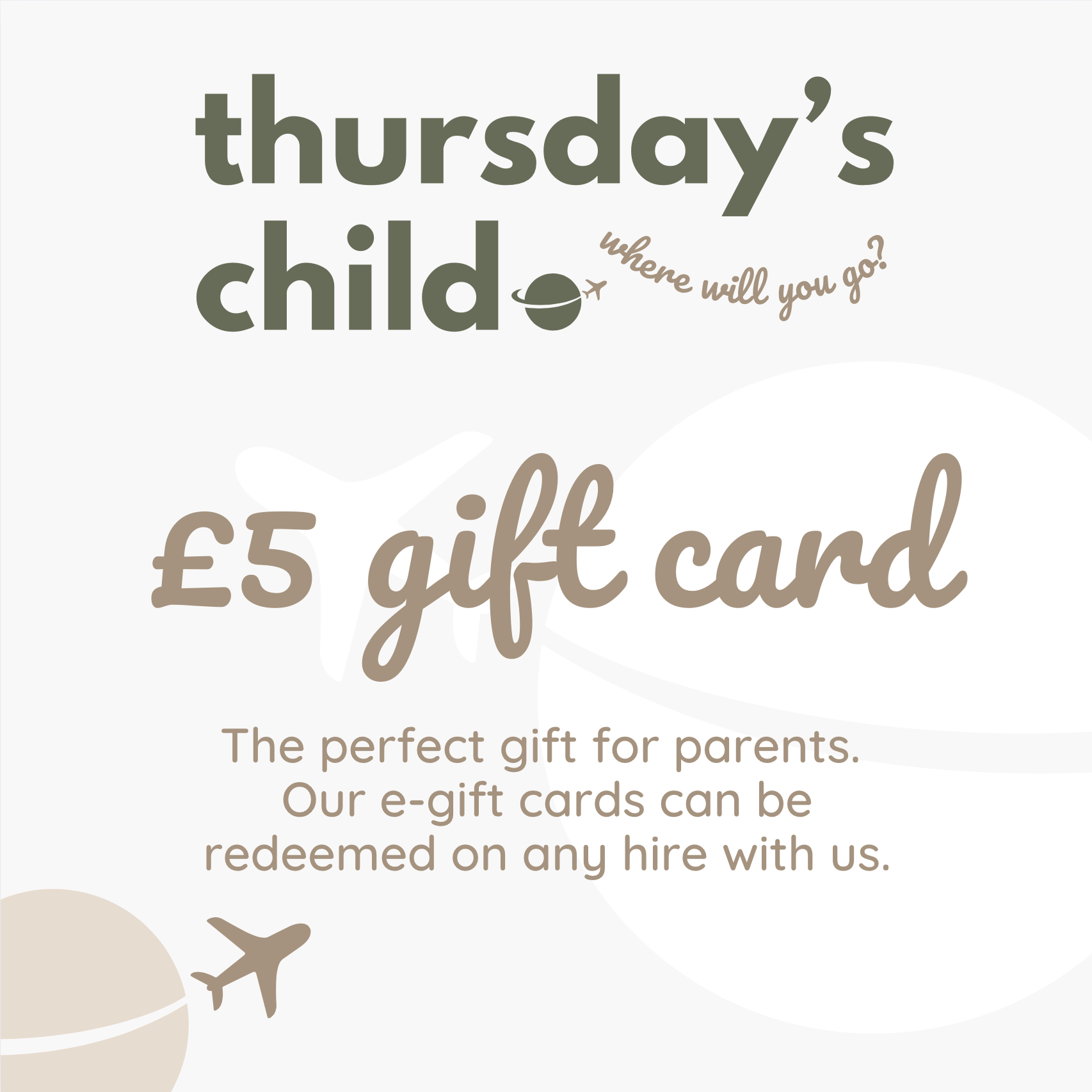 Whether an expecting, a new or an existing parent, the Thursday's Child Baby & Toddler rental gift voucher is ideal for any occasion.